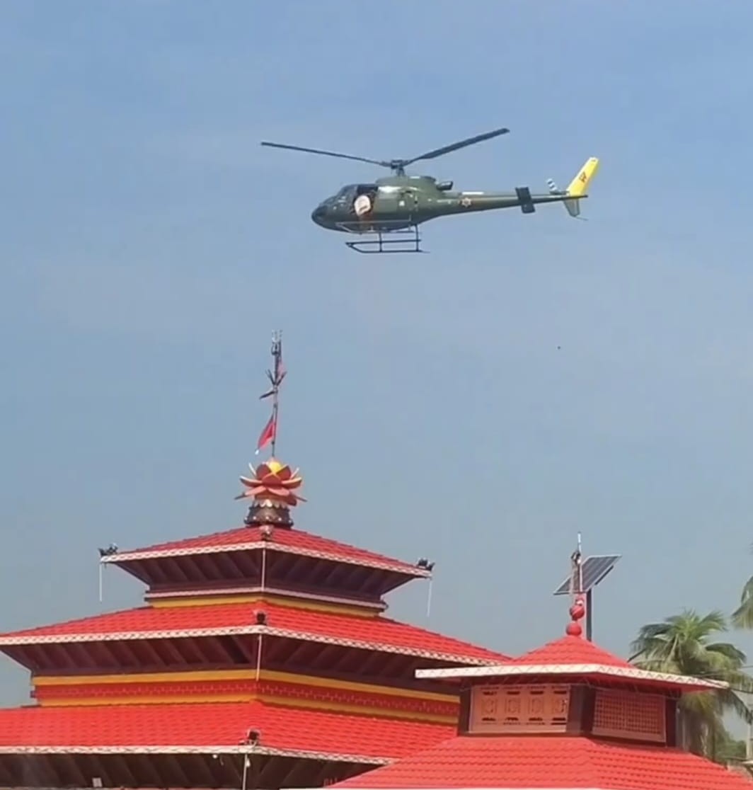 राजविराज । नेपाली सेनाको हेलिकप्टर मार्फत बडादसैँको अवसरमा आज महानवमीका दिन सप्तरीका दुई शक्तिपीठमा पुष्प वृष्टि गरिएको छ । जिल्लाको हनुमाननगर कंकालिनी नगरपालिका(१ भारदहस्थित कंकालिनी भगवती मन्दिरमा नेपाली सेनाको हेलिकप्टरमार्फत पुष्प वृष्टि गरिएको हो । विगत तीन वर्षदेखि महानवमीका दिन यहाँ हेलिकप्टरमार्फत पुष्प वृष्टि गराउन थालिएको छ ।