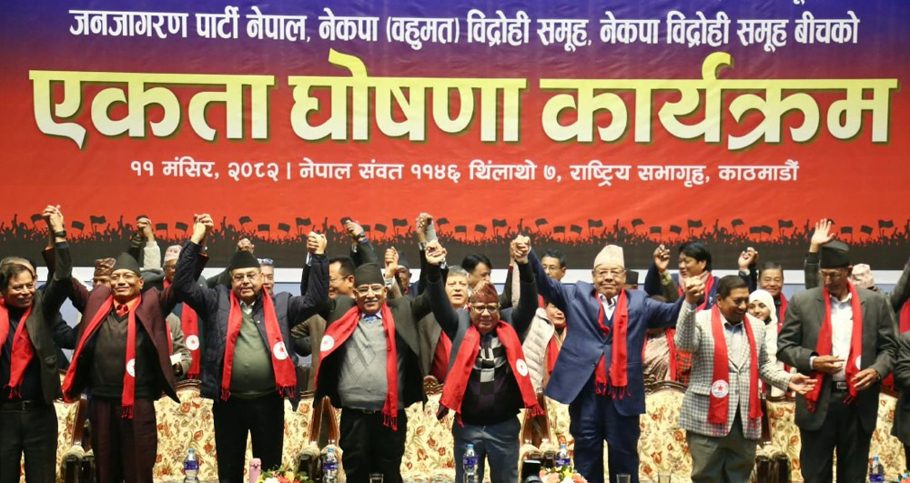 कात्तिक १९ गते १० वटा कम्युनिस्ट घटकहरू एकीकृत भएको नेपाली कम्युनिस्ट पार्टीले सातै प्रदेशमा एकताको सन्देश दिन शुक्रबारदेखि सभा गर्न लागको हो ।