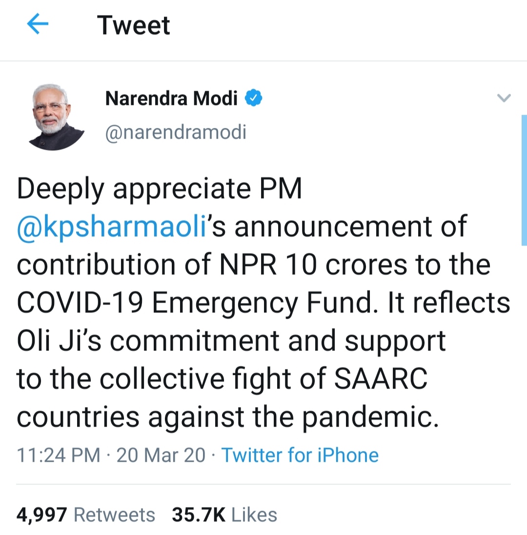 राजबिराज – भारतीय प्रधानमन्त्री नरेन्द्र मोदीले प्रधानमन्त्री के पी शर्मा ओलीले कोभिड–१९ रोकथामका लागि खडा..