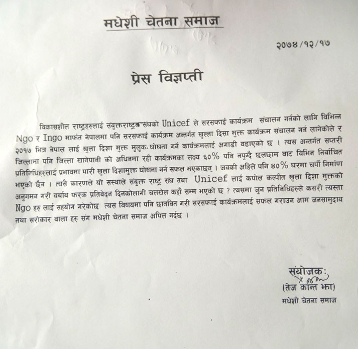 राजविराज– शौचालय निर्माण र प्रयोग व्यवस्थित नहुँदै खुला दिसामुक्त घोषणाका लागि हतार गरेको भन्दै आलोचना भएपछि..