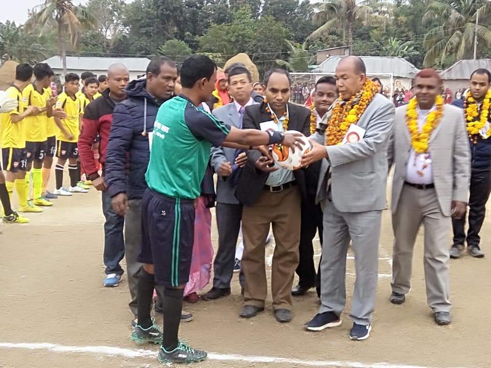 राजविराज- सप्तरीको शम्भुनाथ नगरपालिका ८ पोखरीयास्थित खेलमैदानमा सञ्चालित मेयरकप २०७५ फुटबल प्रतियोगिता..